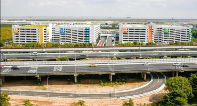 临时采样点之一的P4长时停车库,位于浦东机场T1、T2两座航站楼北端约1.5公里处。