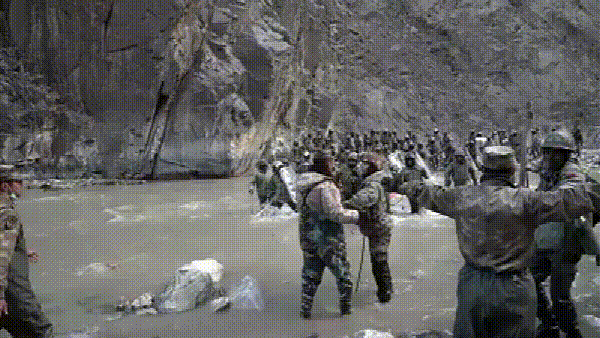 中印边境冲突现场最新画面曝光,官兵激流中被冲散