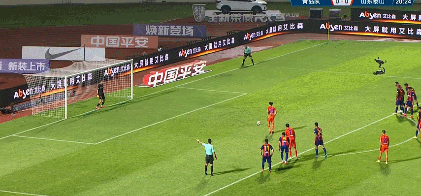 上半场阶段,泰山队前30分钟就让比赛失去了悬念,第21分钟,王彤传中打中青岛队球员手臂,虽然齐天羽头球破门,但是裁判直接判罚点球,孙准浩主罚直接命中,1-0领先。
