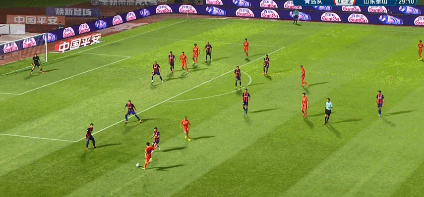 第29分钟,泰山队的进攻卷土重来,宋龙在左路送出高质量的传中,禁区内的费莱尼直接推射入网,比分3-0。