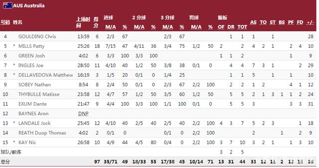 整场比赛,阿根廷这边坎帕佐拿到了9分5助攻,还有6个失误,钻石斯科拉得到7分。澳大利亚这边得分非常均衡,英格尔斯11分7助攻,米尔斯18分,赛布尔12分,艾克萨姆9分,坎戴尔12分7篮板,尼克凯10分10篮板。