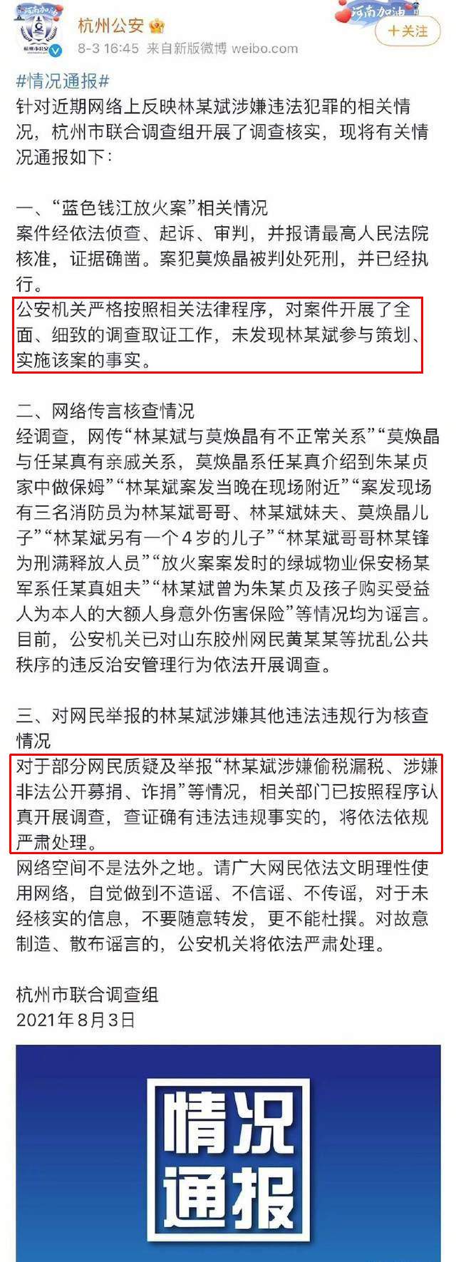 如今,困扰多日的一些疑团终于得以知晓。8月3日,杭州警方通报了有关林生斌的一些情况,为了快速给网友们一个交代,警方特意成立了联合调查组,针对网上盛传林生斌的各种话题,来了一遍彻查。