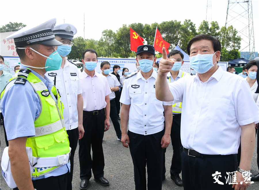 娄勤俭在沪宁高速南京主线收费站“离宁查验点”检查疫情防控工作。