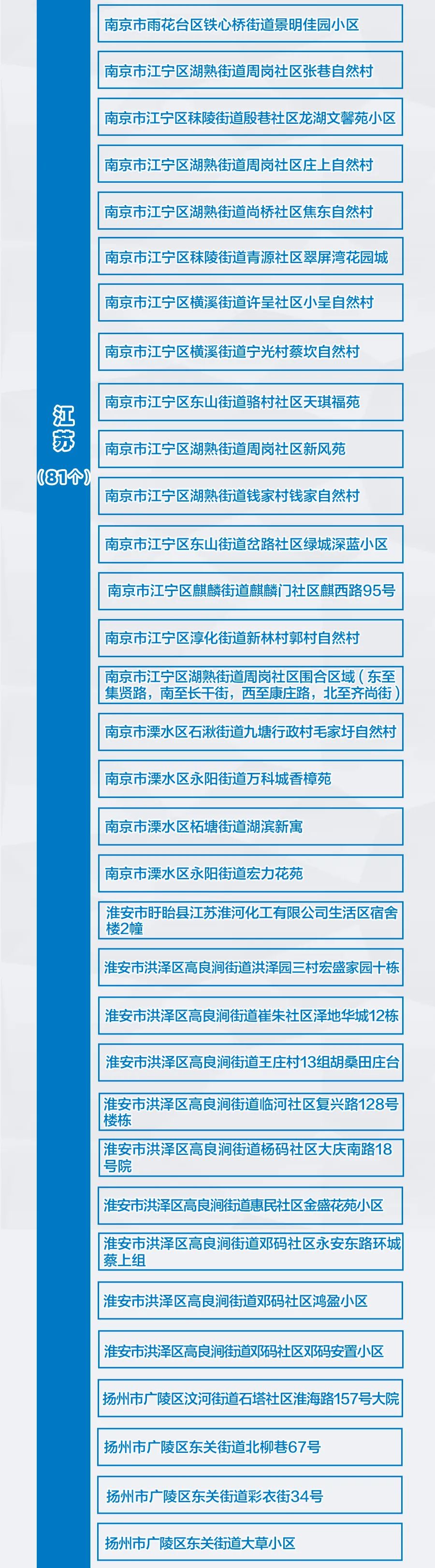 道路水路客运和公共交通方面,暂停进出南京、扬州所有道路客运班线和旅游包车业务,关闭所有道路客运站;途经南京、扬州的道路客运班线、旅游包车不得上下客;全面暂停进出南京、扬州的出租汽车(含网约车)业务;暂停疫情重点封控区及周边的公共交通,对地铁部分线路运营区段进行调整。 铁路客运方面,通过南京、扬州辖区铁路站离开的旅客(不含中转),须提供48小时内的核酸检测阴性证明。 航空客运方面,全面暂停所有进出南京、扬州的国内航班。