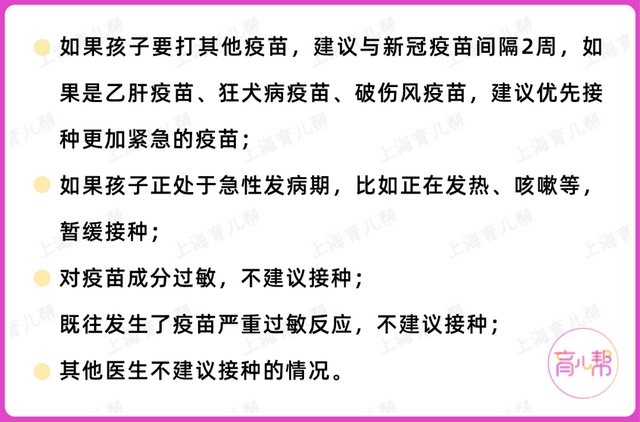 另外,近期内接种过其他疫苗的,不建议和新冠疫苗一起接种,建议在接种其他疫苗14天以后再进行接种。