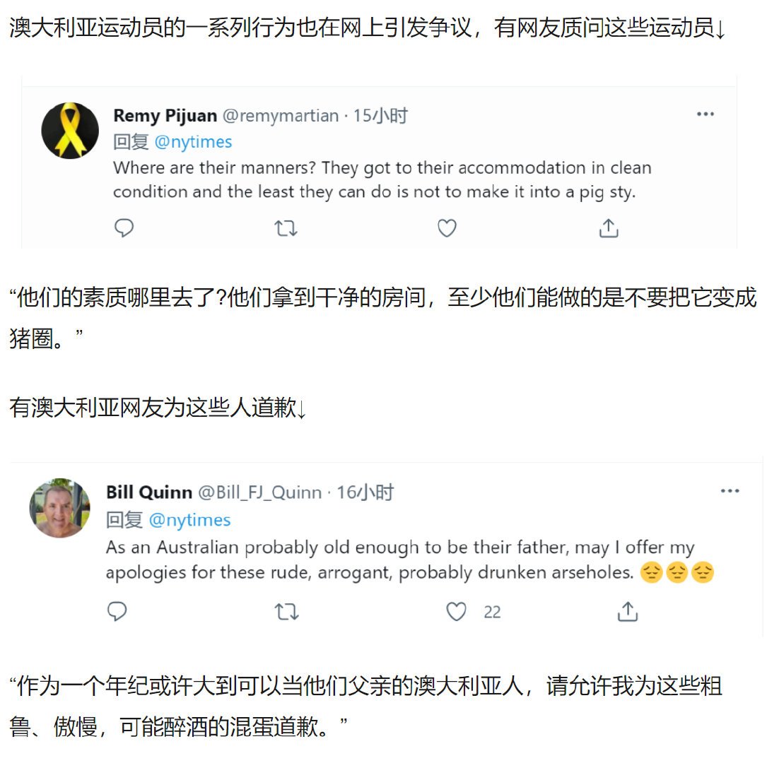 澳大利亚奥委会说法则是,这两支队伍中有“几个人”在离开东京奥运村前,把房间弄成“十分混乱和令人无法接受”的状态。