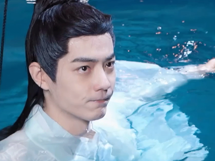 有一场戏是肖战泡在水中,他目光澄澈,眼神坚定,似乎透露出要把这场戏拍好的决心。