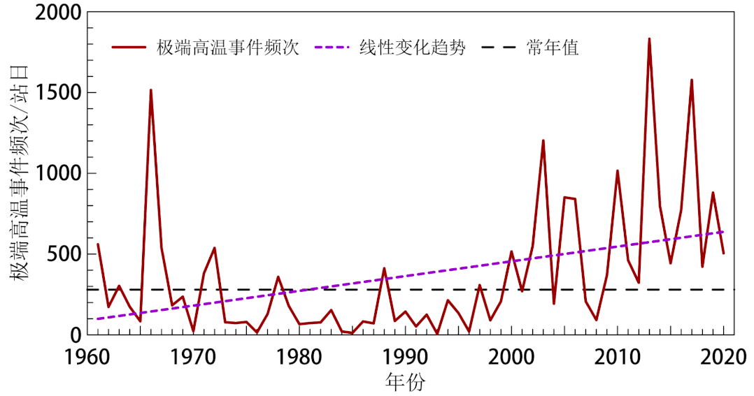 1961~2020年中国极端事件和气候风险指数变化本组图片来源:《中国气候变化蓝皮书(2021)》