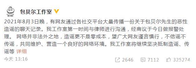 【摘要】 包贝尔被牵扯吴亦凡事件,报警回应造谣者,网友:牵扯的人真多!搜图编辑近段时间应该有很多网友们都关注到吴亦凡的事情了吧,随着都美竹的