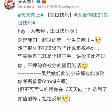节目相当感动,在2016年大张伟过生日时,特地发了一篇长文来感激大张伟的救命之恩。