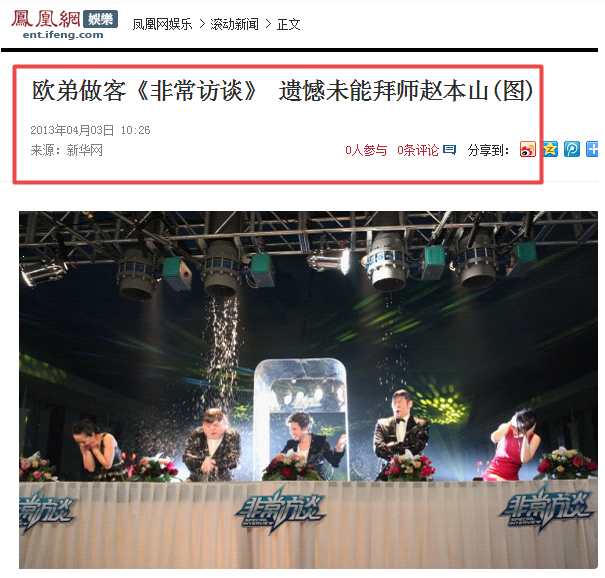 2013年,欧弟对未能拜赵本山为师感到很遗憾,可见,他对赵本山没把自己放在心上一事感到意难平。