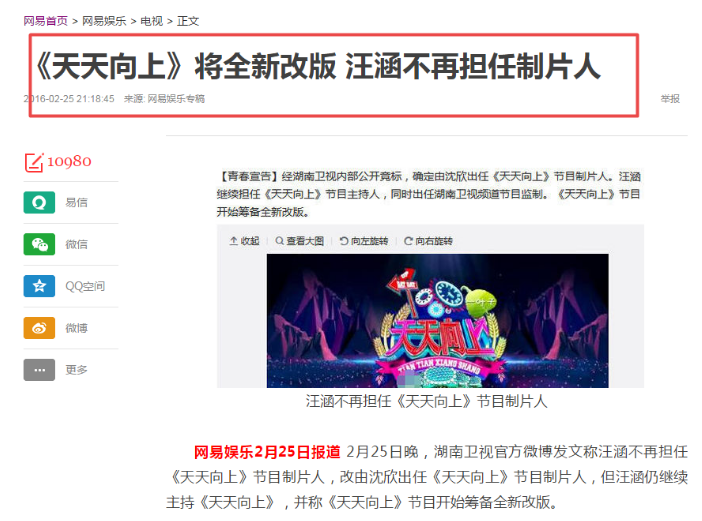 为此,天天向上不得不全新改版,而汪涵也不再担任节目组制片人。