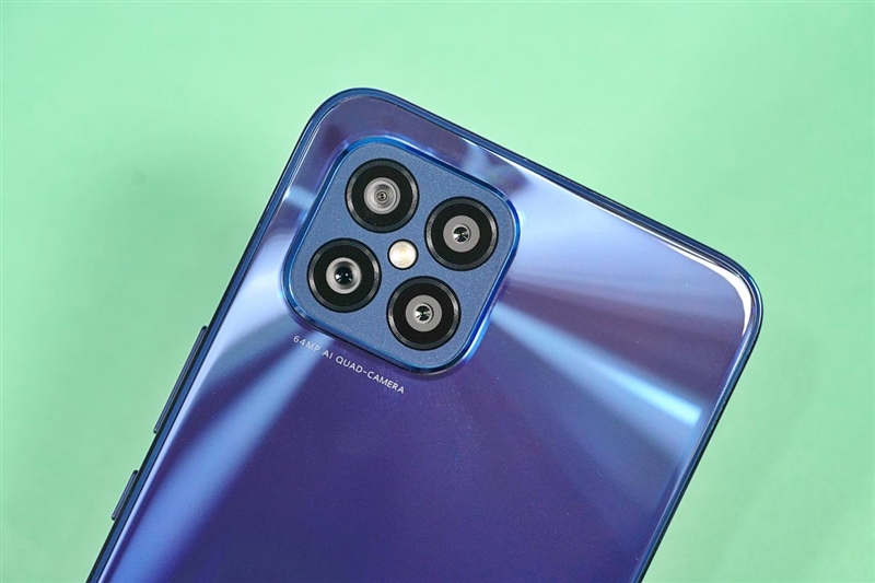华为nova 8 SE的机身背面采用了具有立体光影效果的CMF设计工艺,我们手中的深海蓝配色是经过了多层镀色工艺,显现了由浅往深的深蓝色。在此基础上,机身后背以后置摄像头模组为中心呈现了星芒状的炫光。