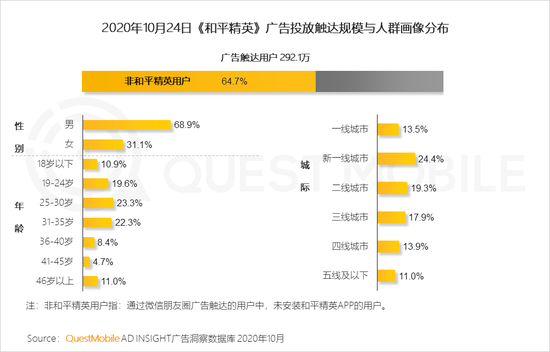 《和平精英》手机游戏通过微信朋友圈广告触达到男性、年轻化群体,10月24日投放当天,广告点击率为8.35%