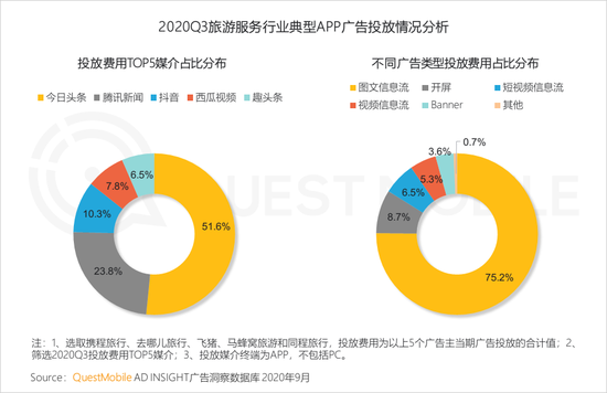 4、旅游服务行业App主要通过头条系媒介投放,并且图文信息流是目前主要触达用户的广告类型