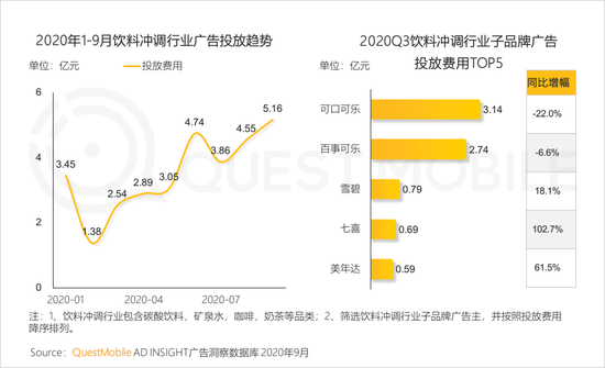 1.1食品饮料广告投放逐渐恢复,但可口可乐、百事可乐等头部品牌投放减少