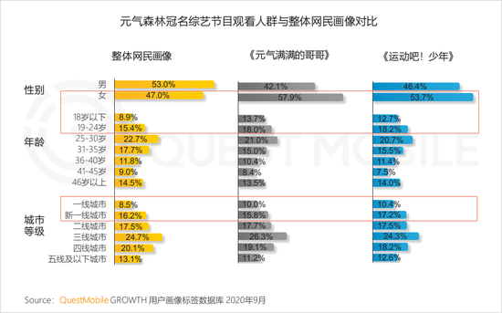 元气森林冠名综艺节目触达各年龄阶段和各城市等级人群,其中“都市女青年”一类人群触达更为突出。