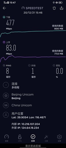 此次Y52s搭载了一颗采用7nm制程工艺芯片,不仅支持 5G+4G 双卡双待,而且还能让 Wi-Fi 与 5G 网络一起为你加速。经过实际测试,vivo Y52s在5G网络下的下载速度能够达到477Mbps、上传速度则能够达到83Mbps。这样的速度,基本就可以和卡顿说拜拜了。在线看直播、下载游戏更新,“唰”的一下就好了!